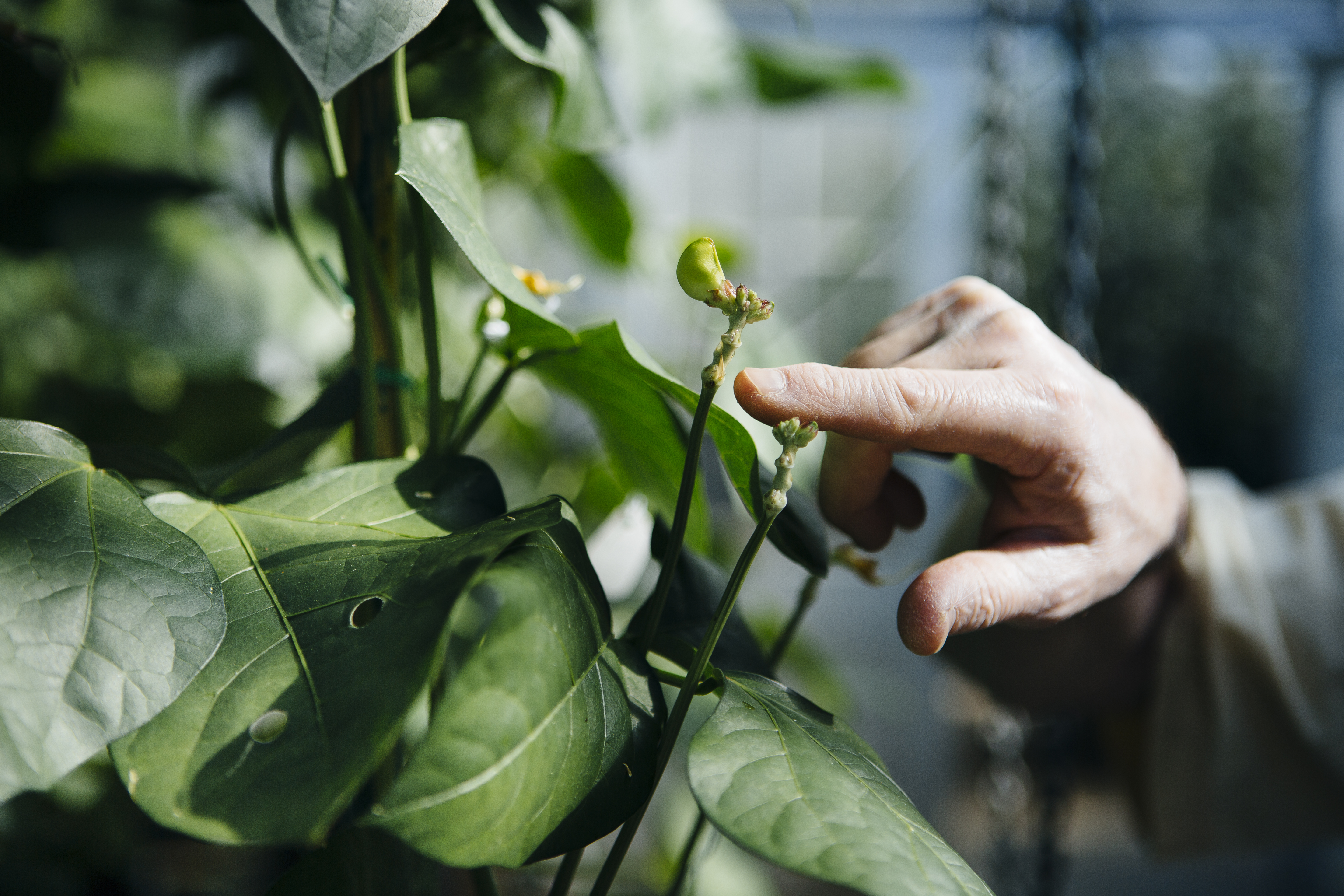 Hand and Plant in Greenhouse